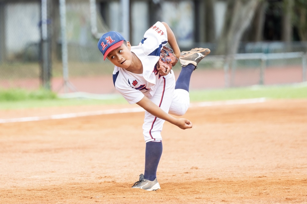 【智林體育台桃園報導】洛杉磯道奇隊日籍球星山本由伸獨有的投球方式,抬腿和跨步都很小,被稱為「山本流」。宜蘭縣三星國小余書亞經過總教練黃郁翔指導,採取比山本動作更小的投球方式,感覺上幾乎不抬腿,出手時人似乎往本壘衝,打者一時之間很難適應。今天(21日)三星以11比0於第4局扣倒屏東縣光華國小,晉級桃園盃國際棒球錦標賽少棒組16強,余書亞4局完封勝。