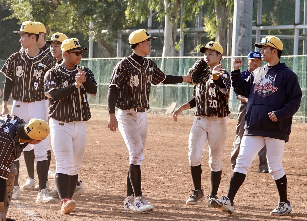 【賽會特約記者王婉玲高雄報導】打完7局上,陽明高中還以5比2領先,壽山高中展現韌性,先在7局下扳平戰局,進入延長賽,雙方再廝殺到9局,陽明高中靠著9局上攻進3分,以及陳昱豪後援守成,終場以11比8獲勝,在高中木棒聯賽辛苦拿下首勝。