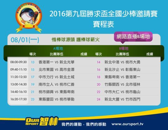 賽事相關訊息及直播網址 https://www.facebook.com/OurSport.tv/