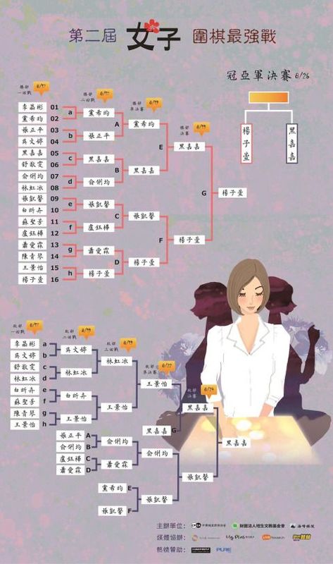 「第二屆女子圍棋最強戰」今日進行敗部冠軍決賽,由黒嘉嘉對張凱馨,勝者將與勝部冠軍楊子萱爭冠。