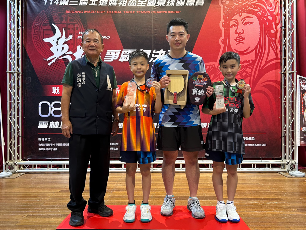 【郭程霖/雲林北港報導】澎湖縣石泉國小賴柏綸、周宜德今(24)日在『114年第三屆北港媽祖盃全國桌球錦標賽』小學五年級男生單打冠軍賽碰頭,不只上演「澎湖內戰」,更是自由盃男雙冠軍搭檔的對決。兩個人經歷激烈的五局大戰,最終由賴柏綸逆襲奪冠。