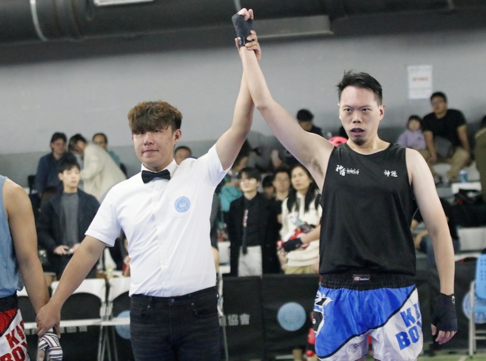 神盾武道館張振豪,今天在成人男子「輕踢」比賽中,連續戰勝2名對手示成功衛冕,奪得-84KG級冠軍。「現在更能清楚知道自己的問題,提升自己面對猛拳的勇氣和耐力。」