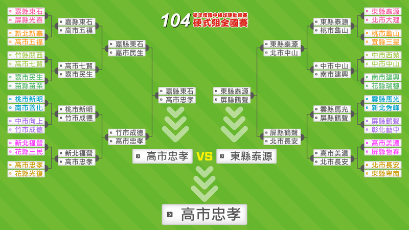 104學年度國中棒球運動聯賽硬式組全國賽 戰績