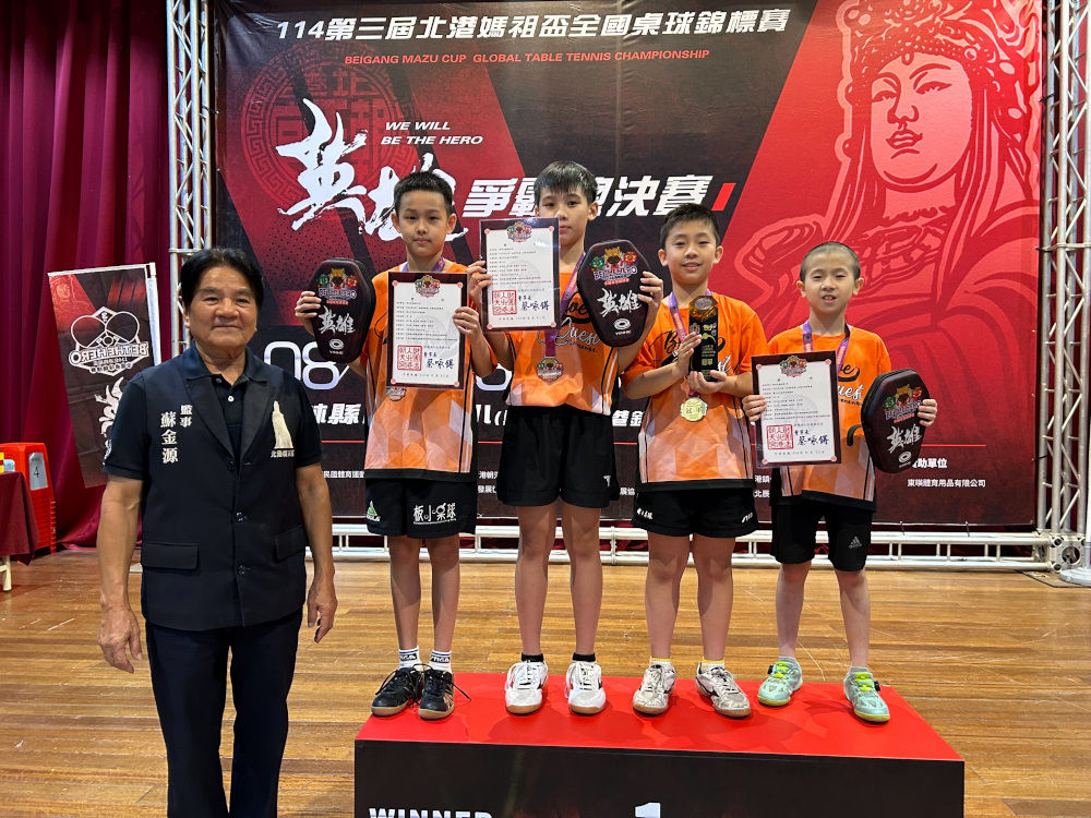 【郭程霖/雲林北港報導】「真的很開心,畢竟是學校第一次拿到全國賽等級的冠軍。」新北市板橋國小B隊,在『114年第三屆北港媽祖盃全國桌球錦標賽』小五男團冠軍賽上,以2:0擊敗仁愛國小A隊,拿下校史首座全國性的團體賽冠軍。