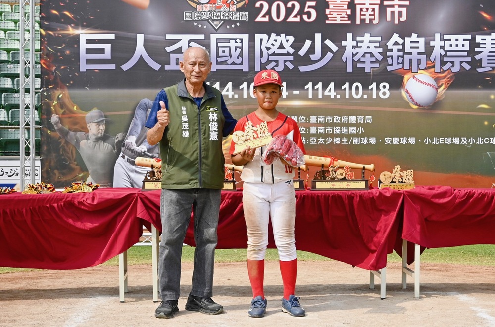 【賽會特約記者王婉玲台南報導】衛冕軍台北市東園國小今天(18日)在冠軍戰靠著隊長陳冠廷一夫當關完投,終場以6比2擊敗台中市大仁國小,抱回巨人盃國際少棒錦標賽冠軍,達成三連霸,帶回冠軍錦旗。