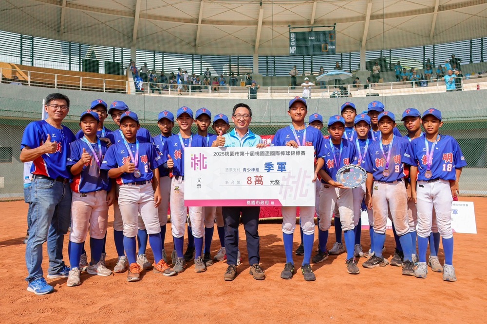【賽會特約記者王婉玲桃園報導】桃園盃國際棒球錦標賽青少棒組季軍戰今天(24日)上演桃園內戰,雙方廝殺到延長賽8局才分出高下,桃園市新明國中B靠著陳葳綸再見安打,終場以5比4氣走桃園市龜山國中,抱回季軍,龜山則獲殿軍,兩隊都創下隊史新高名次。