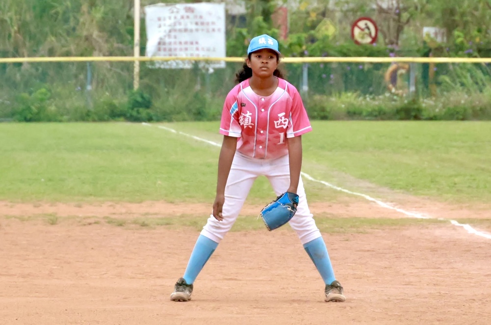 鎮西今年陣中有張黝黑面孔,被戲稱為「洋將」的蔡和霏引人注目,小六的她身高近170公分,相當突出,在小三升小四時加入球隊,主要守位是投手、一壘。