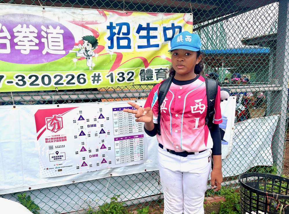 【賽會特約記者王婉玲苗栗報導】雲林縣鎮西國小有洋將!穿著1號球衣的蔡和霏是台灣、奈及利亞混血兒,連續三年參加國小軟式聯賽女子組,經驗豐富。