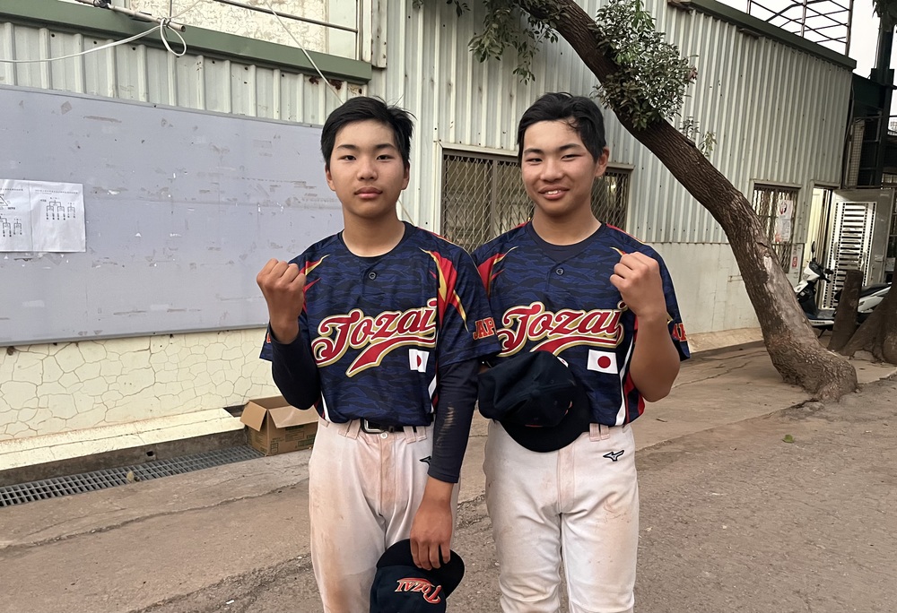 小六大宮颯泰與哥哥大宮颯真長相幾乎一樣,哥哥身材較粗壯,兩人自小一就開始打球,大宮颯泰說,再見安打那球設定外角低球攻擊,雖然今天打擊建功,不過掌握擊球點其實還不夠好,第一次來台灣參賽,台灣是個溫暖的好地方。