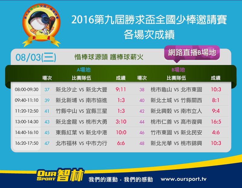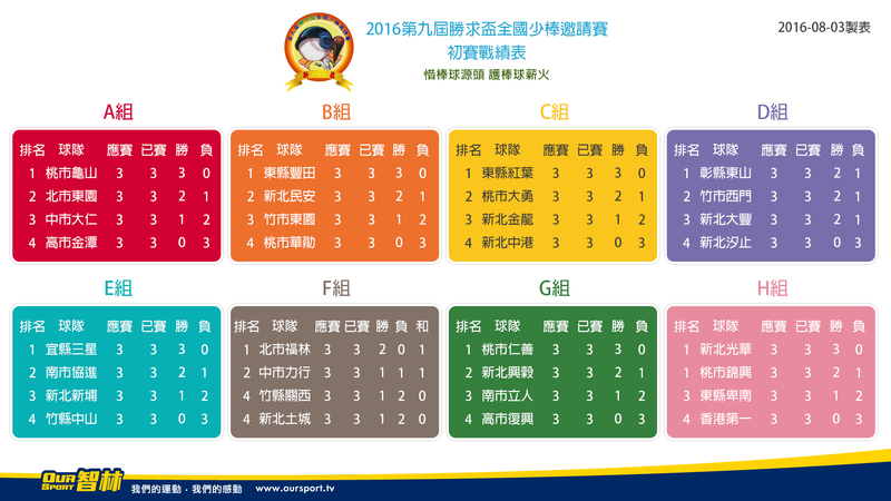 2016第九屆勝求盃全國少棒邀請賽7/31~8/6於新莊瓊林棒球場熱鬧開打!