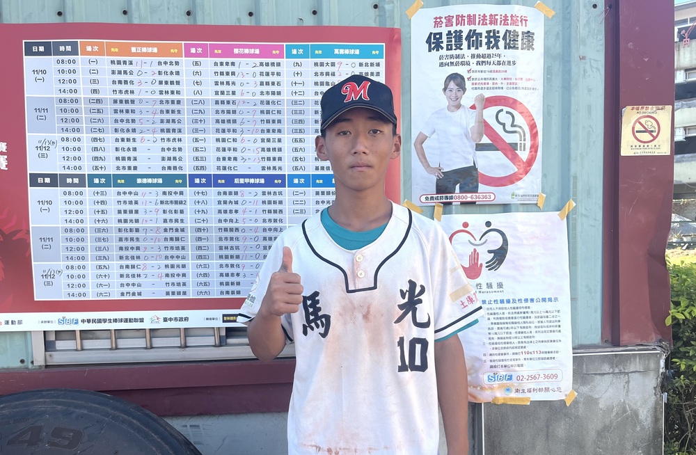 馬光隊長陳柏瑜單場四次打擊都上壘,包括一壘、三壘安打以及觸身球、失誤,稱職扮演第一棒角色,林子瑋說,他是球隊王牌,少棒在文昌國小打球也以軟式為主,比較熟悉,他目前還沒登板,有機會在複賽亮相。