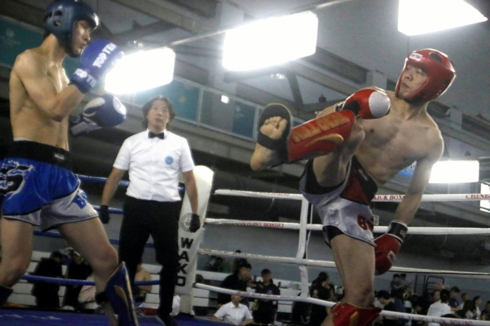鄺飛施展飛身遊踢,攻擊比自己高出一截的對手。姚瑞宸攝