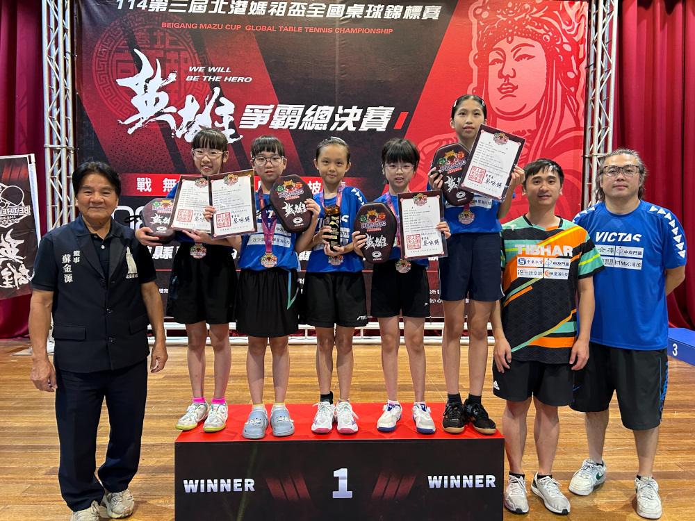 【郭程霖/雲林北港報導】『114年第三屆北港媽祖盃全國桌球錦標賽』今(24)日進行小學五年級組的團體賽,嘉義市嘉北國小在冠軍賽與雲林縣大埤國小碰頭,兩隊在決賽打得難分難捨,但最終仍由嘉北國小奪下小五女團的冠軍。