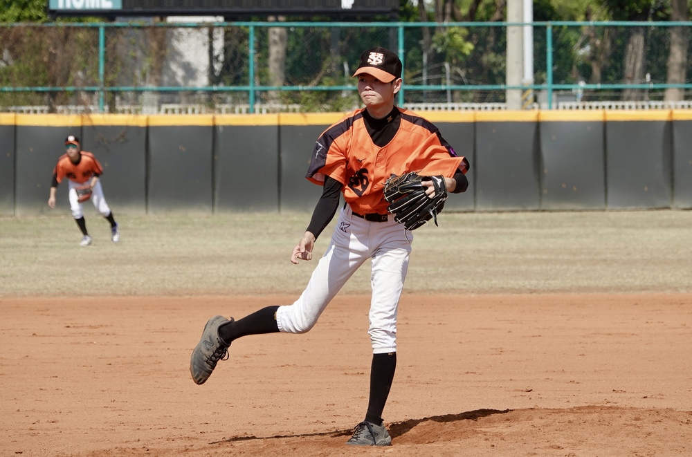 高三彭凱彥身高174公分,體重僅57公斤,身形單薄,他前兩年都打鋁棒聯賽,今年首次報名木棒聯賽,他坦言很開心,今天投得還不錯,投手教練邱子愷之前有調整自己踏腳的位置,控球感覺變穩定,主要武器是曲球。